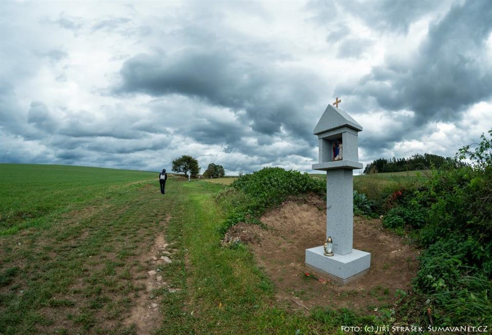 Křížová cesta vede od chatové osady v Čínově a končí po půl kilometru v osadě Kydliny.