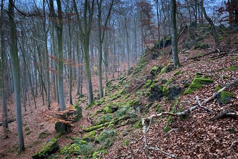 V severní části se nachází výrazná skalka nazývaná Kazatelna českých bratří, která z určitých úhlů připomíná lidskou hlavu. Nedaleko cesty můžete narazit na osamělý skalní útvar zvaný Samohrd.
